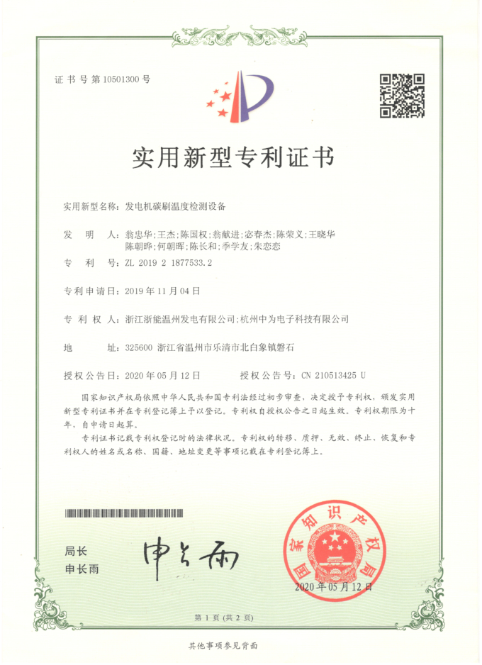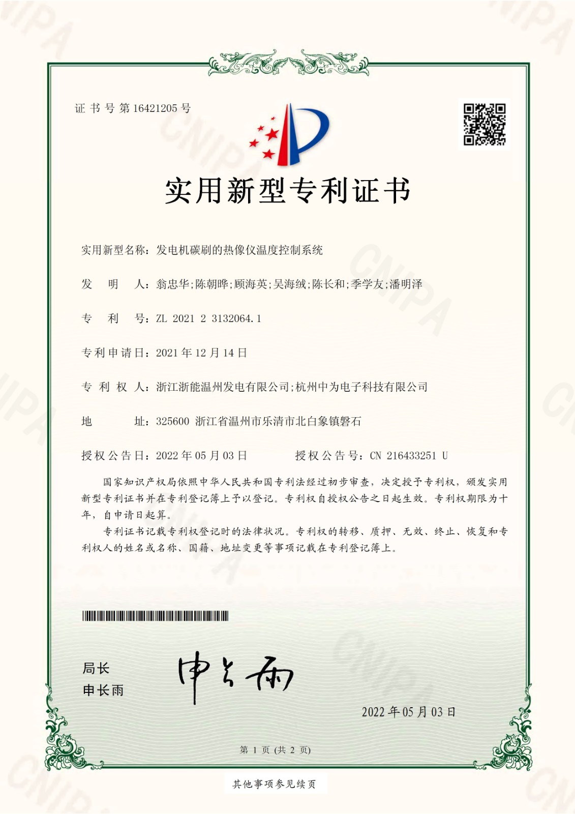 本項(xiàng)目已申請(qǐng)2項(xiàng)實(shí)用新型專利,并發(fā)表一篇論文;一項(xiàng)專利名稱為“發(fā)電機(jī)碳刷溫度檢測(cè)設(shè)備”,申請(qǐng)?zhí)枮镃N201921877533.2 ;一項(xiàng)專利名稱為“發(fā)電機(jī)碳刷紅外熱像儀”,申請(qǐng)?zhí)枮镃N201921877571.8;論文名稱為“集電環(huán)-碳刷紅外熱成像在線監(jiān)測(cè)系統(tǒng)”,電力系統(tǒng)裝備。
