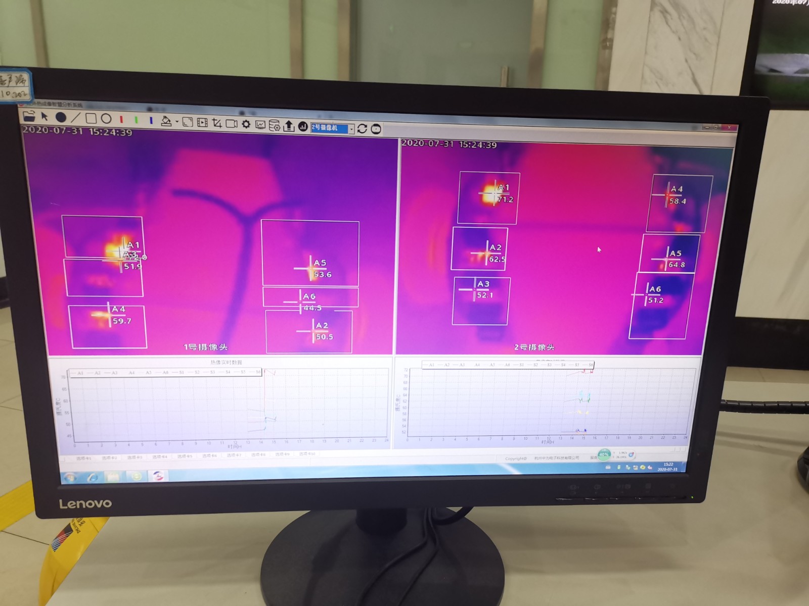 發(fā)電機(jī)碳刷在線監(jiān)測(cè)系統(tǒng)軟件預(yù)先使用多邊形區(qū)域測(cè)溫工具將重點(diǎn)部位框選出來(lái),區(qū)域內(nèi)最高點(diǎn)溫?cái)?shù)值及位置實(shí)時(shí)顯示,以實(shí)現(xiàn)重點(diǎn)部位重點(diǎn)監(jiān)控的目的。系統(tǒng)軟件所配置的點(diǎn)、線、多邊形測(cè)溫工具所框選的測(cè)溫區(qū)域都是相互獨(dú)立的,任意區(qū)域內(nèi)溫度、溫升達(dá)到其區(qū)域設(shè)置的閾值都能觸發(fā)高溫報(bào)警。