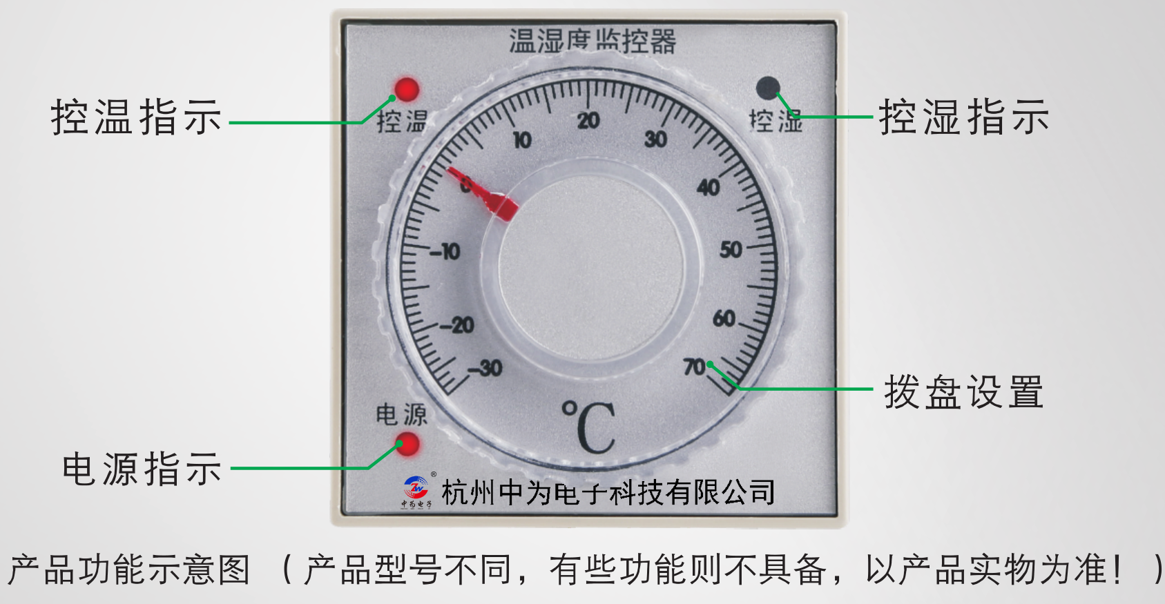 4.除凝露型:當測量濕度值大于88%RH時,啟動除凝露負載,當測量濕度小